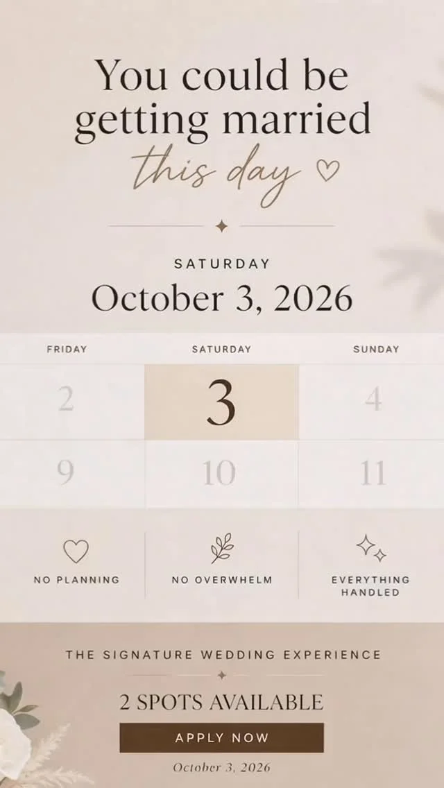 (For couples who want an already planned, beautiful wedding without the cost, chaos, or year-long planning.)